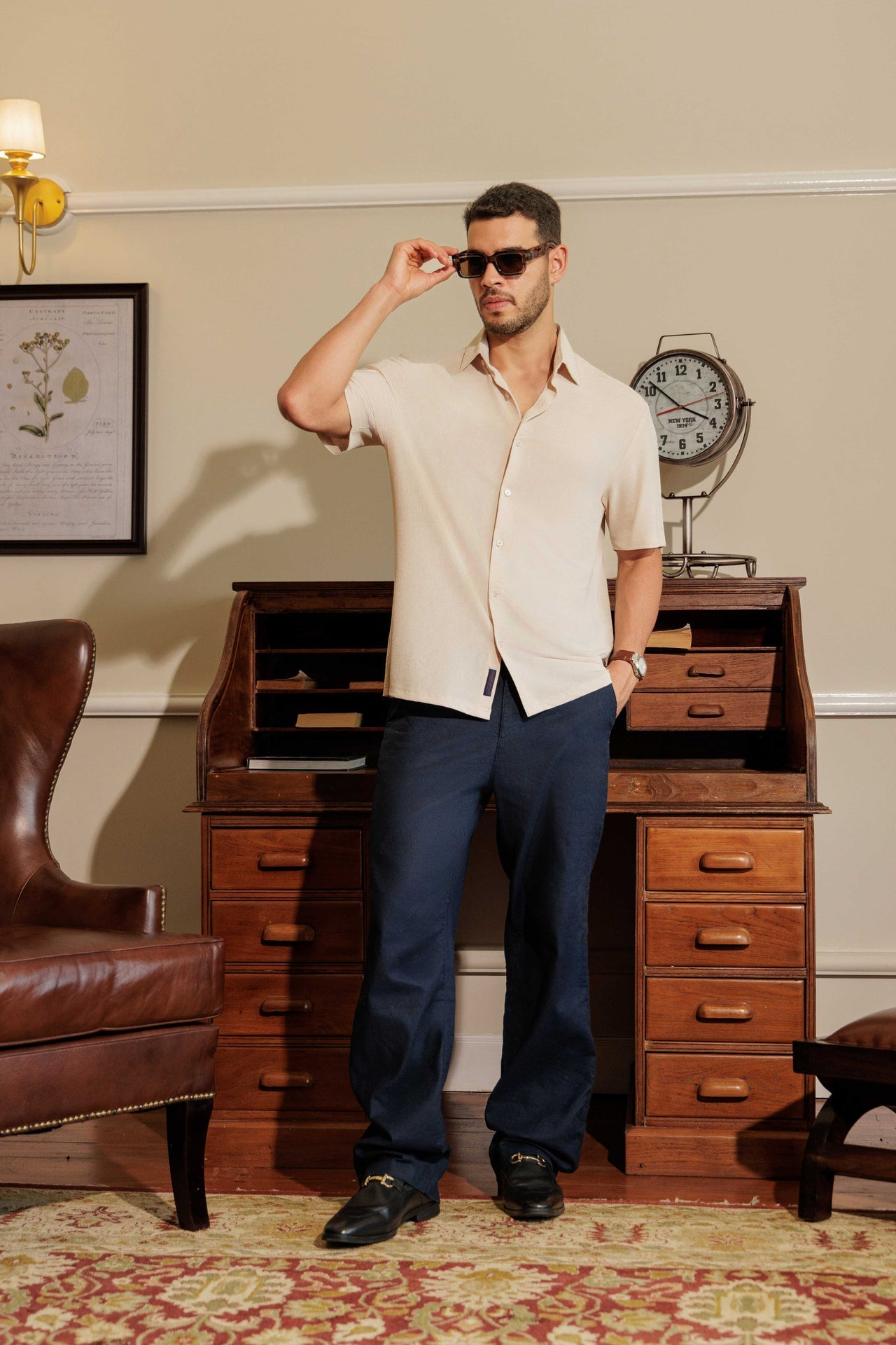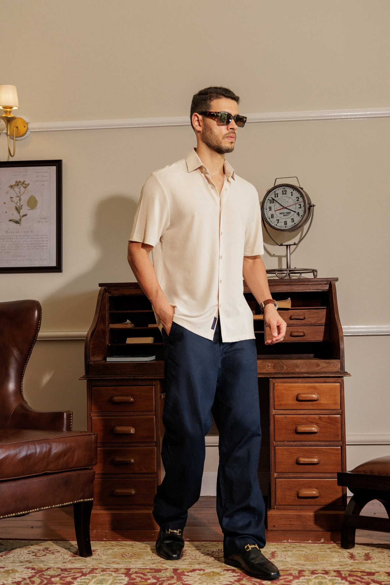 A bold reinterpretation of casual sophistication, this short-sleeve shirt is crafted from a semi-sheer textured fabric that blends structure with fluidity. The lightweight weave offers breathability and a tactile finish, revealing subtle tonal variations and refined transparency that elevate its modern appeal. Designed with an open collar and relaxed silhouette, it delivers an effortless statement perfect for evenings, elevated casualwear, or resort-inspired styling.