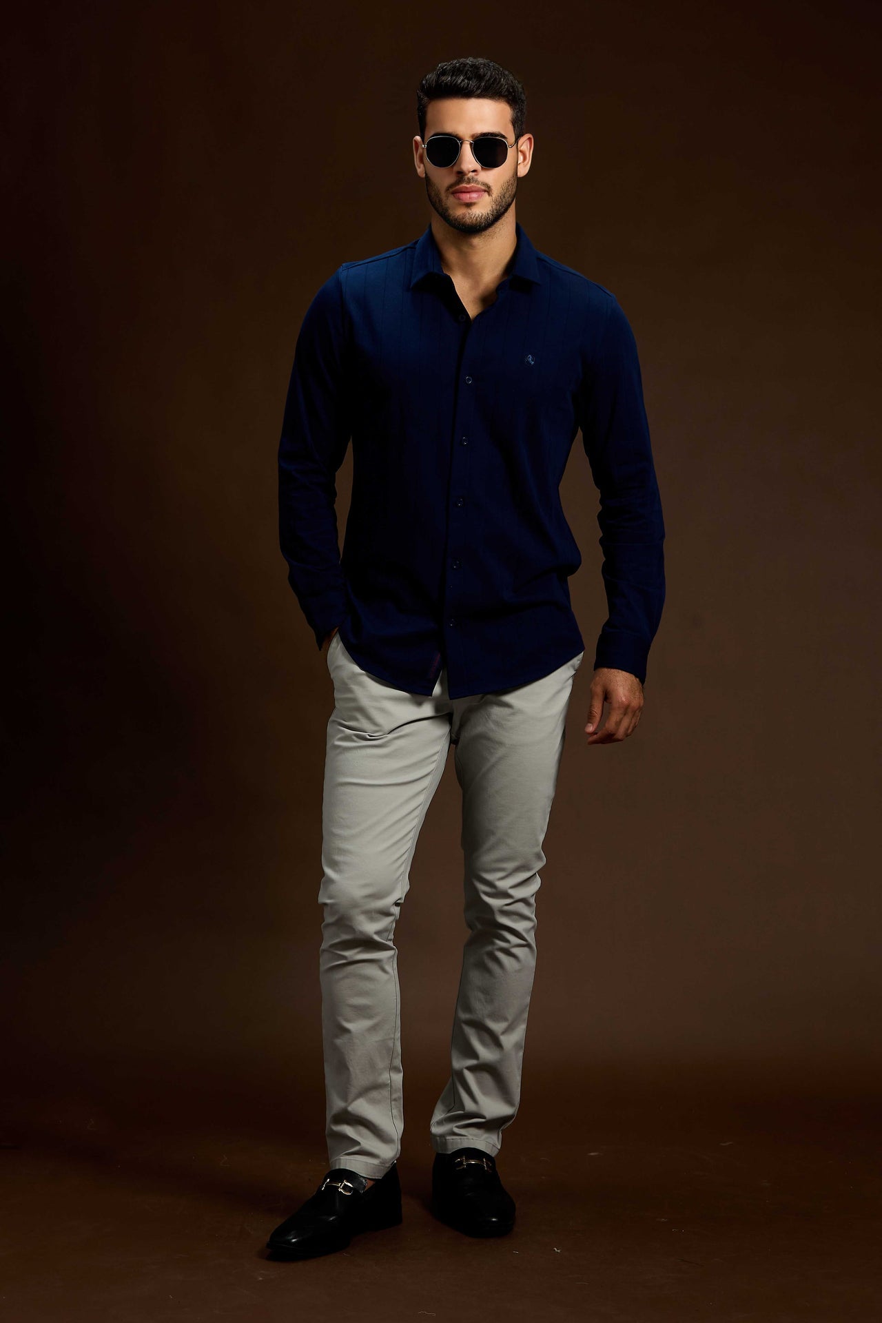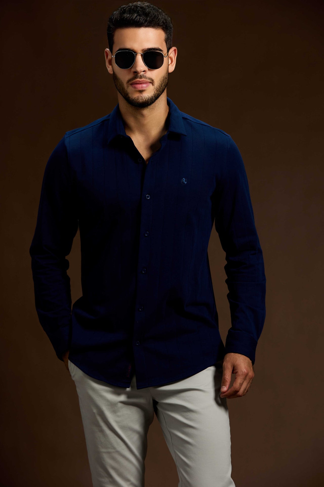 The Strato Ribbed Tailored Shirt is crafted for a sharp, modern look with elevated comfort. Made from a premium fabric featuring a refined vertical rib texture, it delivers subtle depth and a sleek, structured appearance while remaining soft and breathable on the skin. The clean button-through front, classic collar, and neatly finished cuffs create a polished silhouette that flatters the body with a tailored fit. Designed to drape smoothly and move effortlessly, this shirt transitions seamlessly from smart workwear to evening occasions, making it a versatile essential for a refined wardrobe.