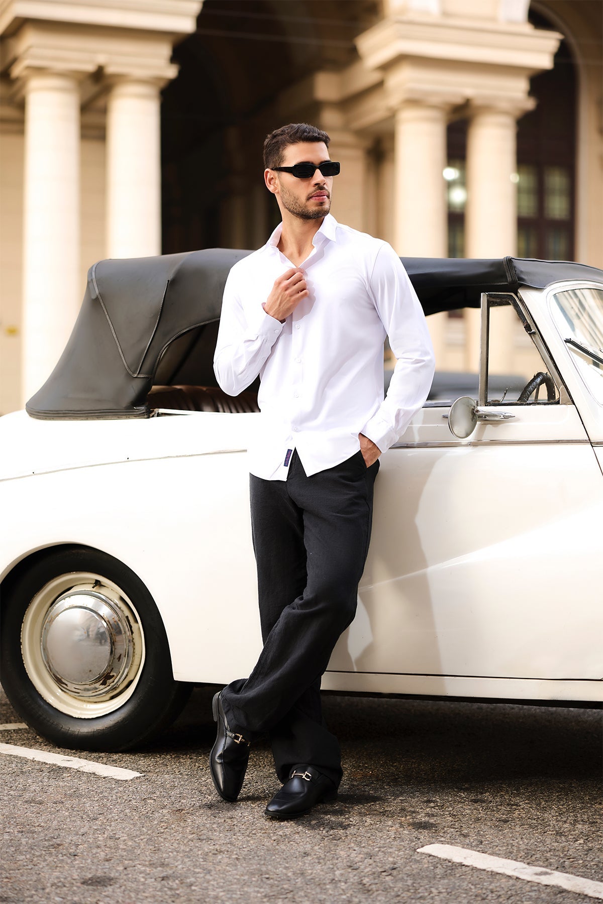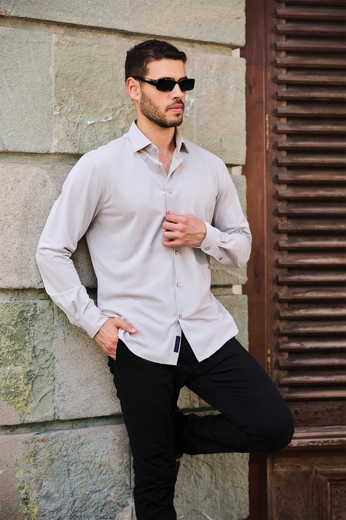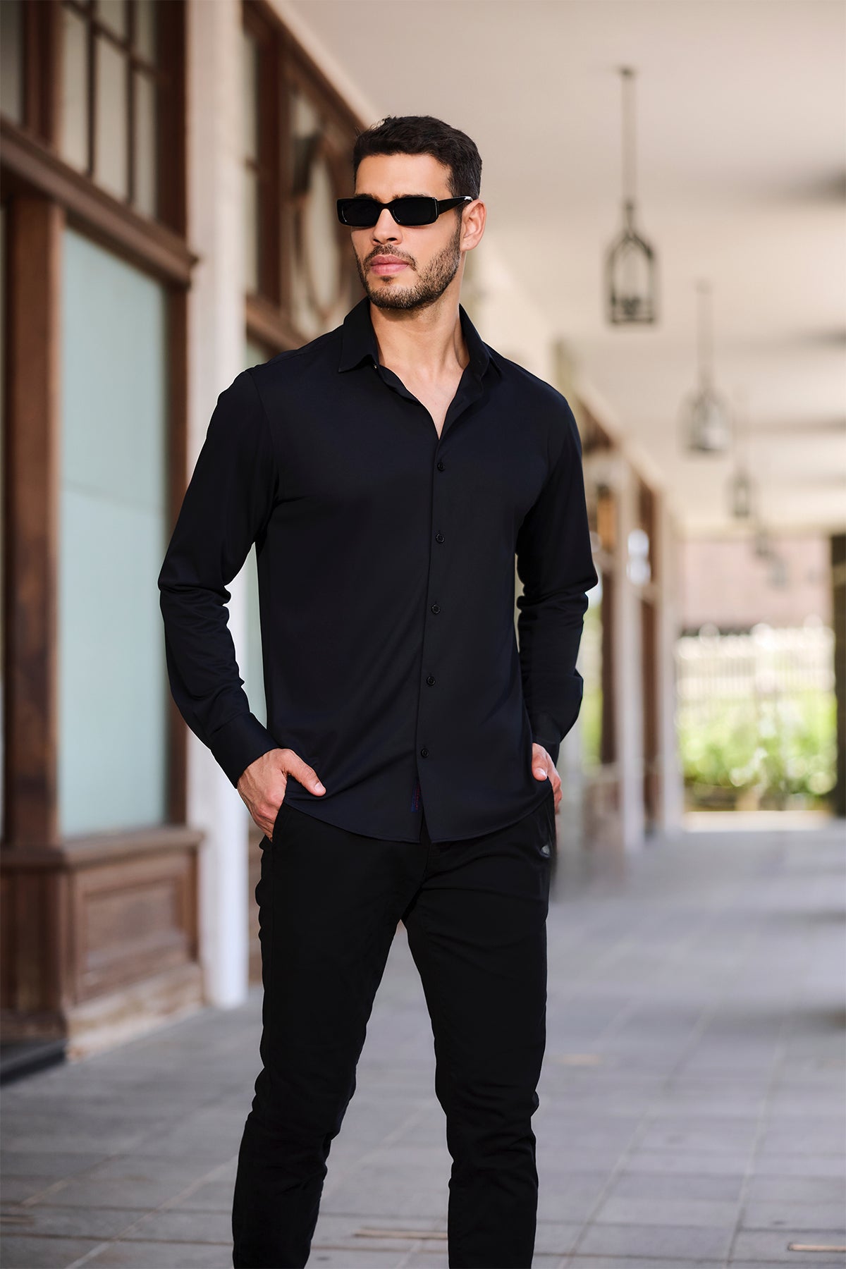නවීන නමුත් සැහැල්ලුවෙන් නිර්මාණය කර ඇති මිඩ්නයිට් වේව් ටෙක්ස්චර්ඩ් ෂර්ට් නවීන ඇඳුම් ආයිත්තම් කට්ටලය සඳහා බහුකාර්ය අත්‍යවශ්‍ය අංගයකි. සියුම් වර්ණවලින් සියුම් වයනය සහිත විස්තර සහිතව සකස් කර ඇති මෙය සම්භාව්‍ය කමිසයට පිරිපහදු කළ දාරයක් ගෙන එයි. සැහැල්ලු රෙදිපිළි හුස්ම ගත හැකි සුවපහසුවක් ලබා දෙන අතර තියුණු කරපටි සහ පිරිසිදු බොත්තම්-පහළ සැලසුම වෙහෙසකින් තොරව අලංකාරය සහතික කරයි. ස්මාර්ට්-අනියම් සැකසුම් සඳහා පරිපූර්ණ වන එය සකස් කළ කලිසම් හෝ ඩෙනිම් සමඟ බාධාවකින් තොරව යුගලනය වන අතර එය දිවා රෑ දෙකටම පහසු තේරීමක් කරයි.