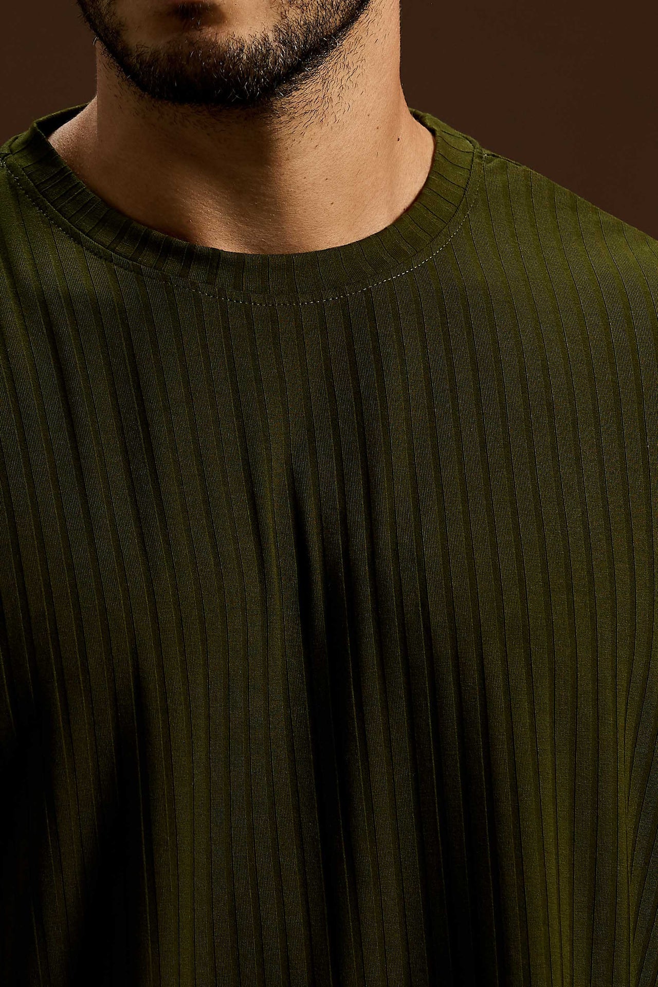 Designed with a refined vertical rib structure, the Vertical Flow Rib Tee delivers a sophisticated texture that enhances depth and movement. The fabric features a soft, fluid hand feel with natural stretch, allowing the garment to drape effortlessly on the body. Its relaxed silhouette offers comfort without losing shape, while the clean neckline and minimal detailing keep the look elevated and versatile. Ideal for everyday wear or refined layering, this tee balances modern styling with tactile appeal.