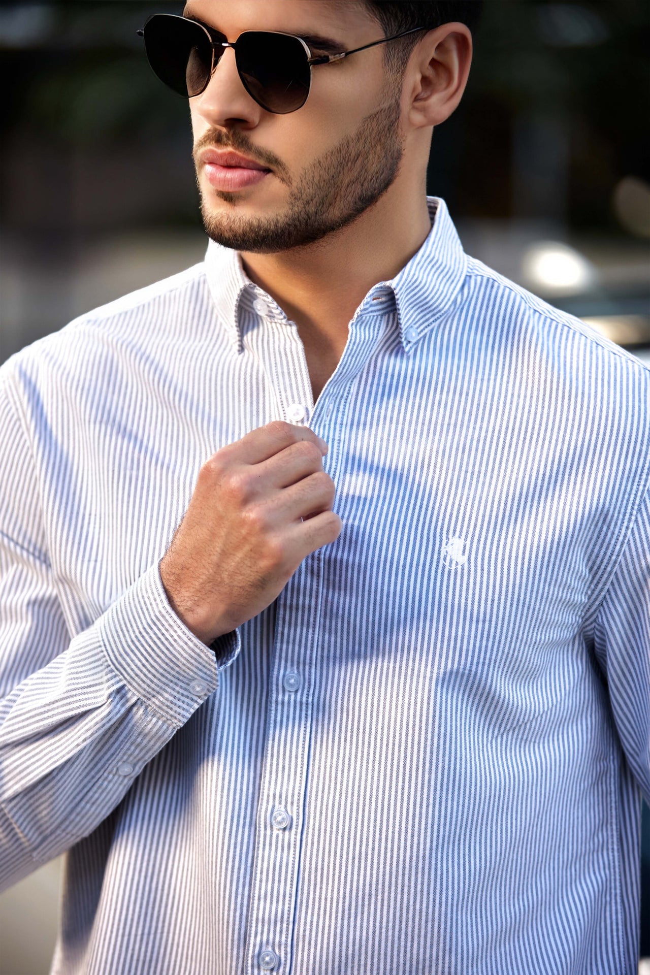 The Signature Stripe Oxford Shirt is crafted for timeless versatility with a refined everyday structure. Made from an authentic Oxford basket weave, the fabric features a subtly textured surface that delivers durability, breathability, and a naturally crisp appearance.