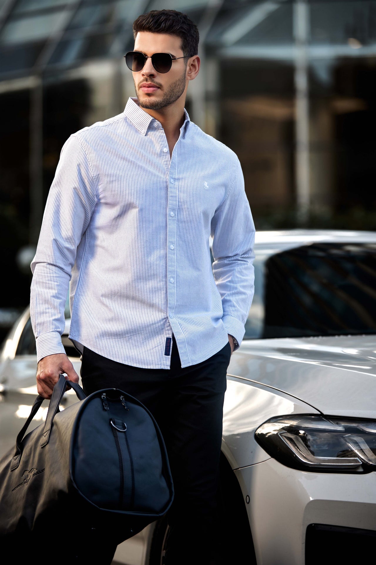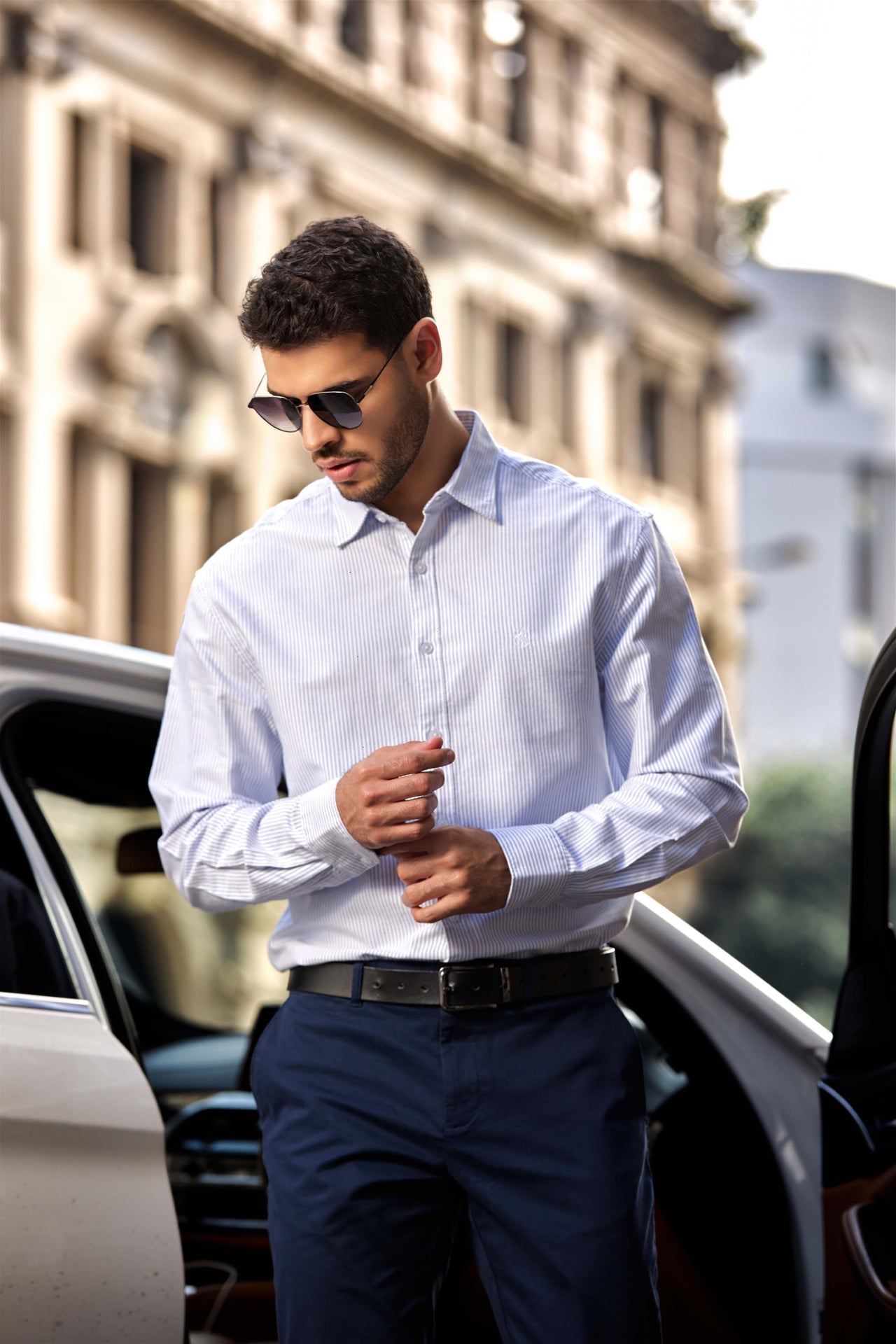 This long-sleeve shirt blends timeless tailoring with modern comfort. Crafted from a smooth woven fabric, it features a refined vertical stripe texture that adds depth and elongates the silhouette. The material feels soft against the skin while maintaining a crisp structure, making it ideal for both everyday wear and polished occasions.