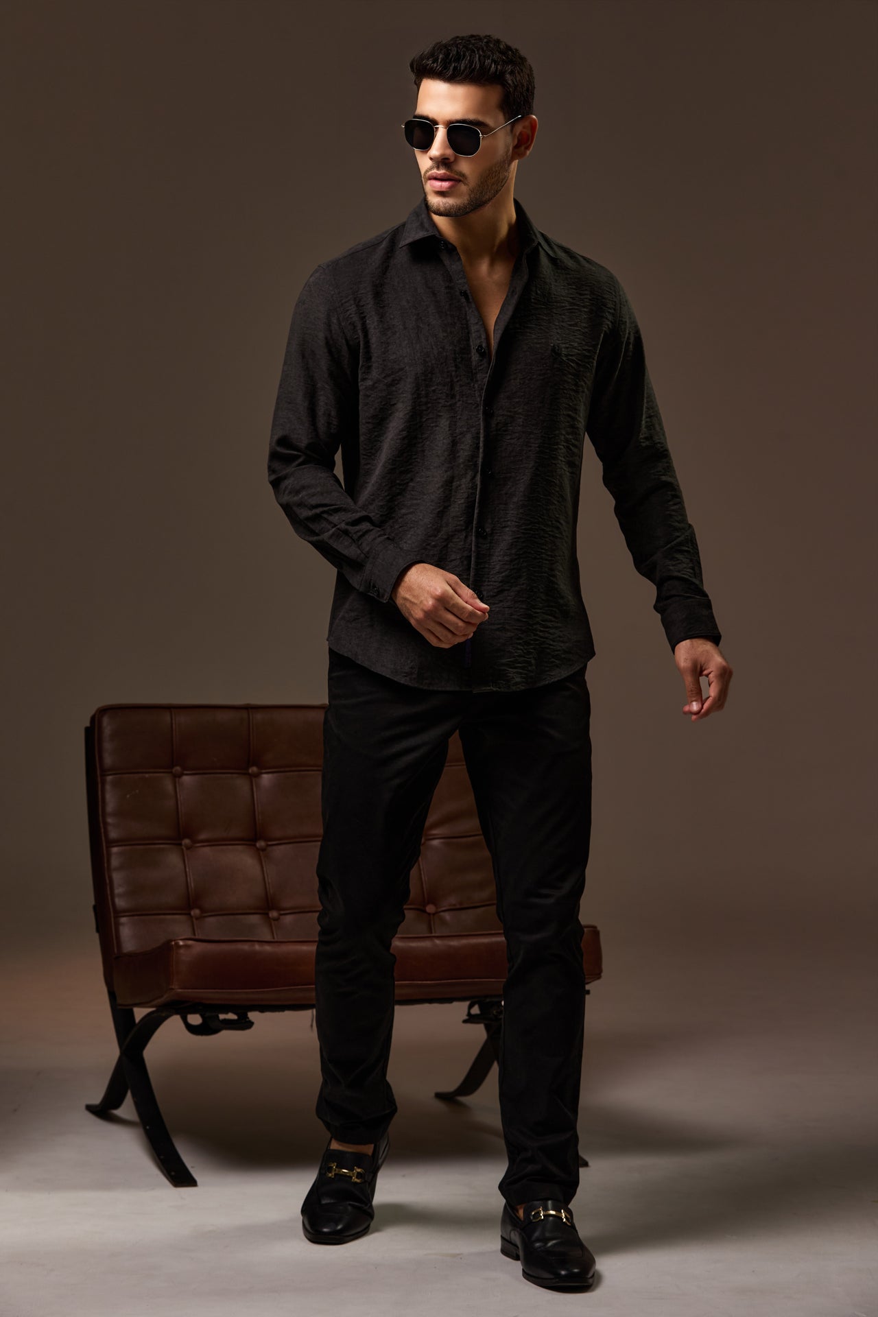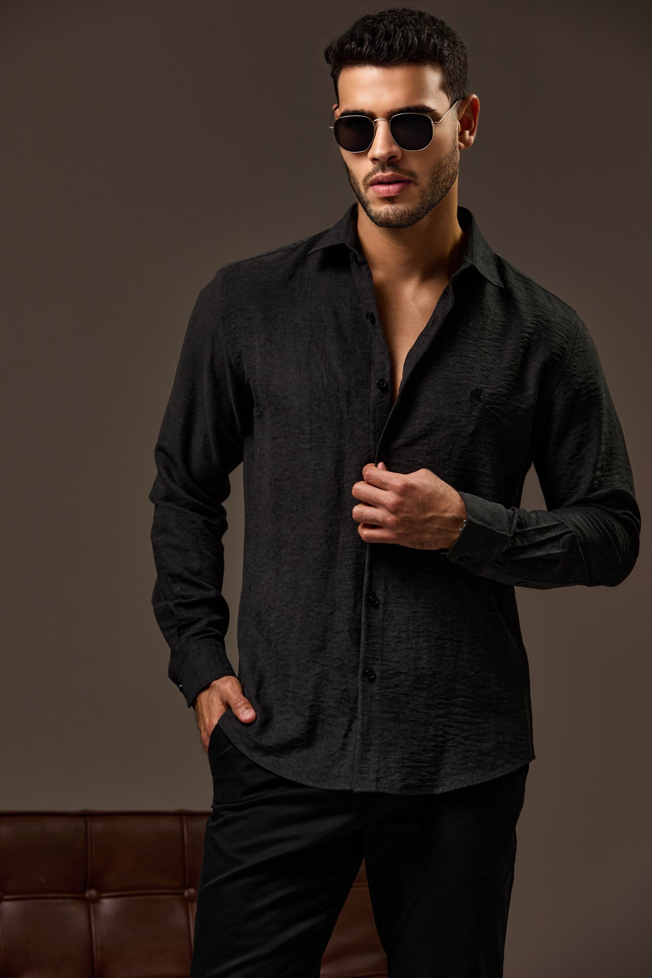 The Avaris Soft-Touch Tailored Shirt is crafted to deliver a refined, modern look with exceptional comfort. Made from a premium fabric with a smooth, suede-like hand feel, it offers a subtle matte texture that adds depth and a luxurious finish to the silhouette. Designed with a clean button-through front, structured collar, and neatly tailored cuffs, this shirt creates a sharp yet relaxed profile. The lightweight construction allows for easy movement while maintaining a polished drape, making it ideal for smart-casual occasions and elevated evening wear where understated sophistication is key.