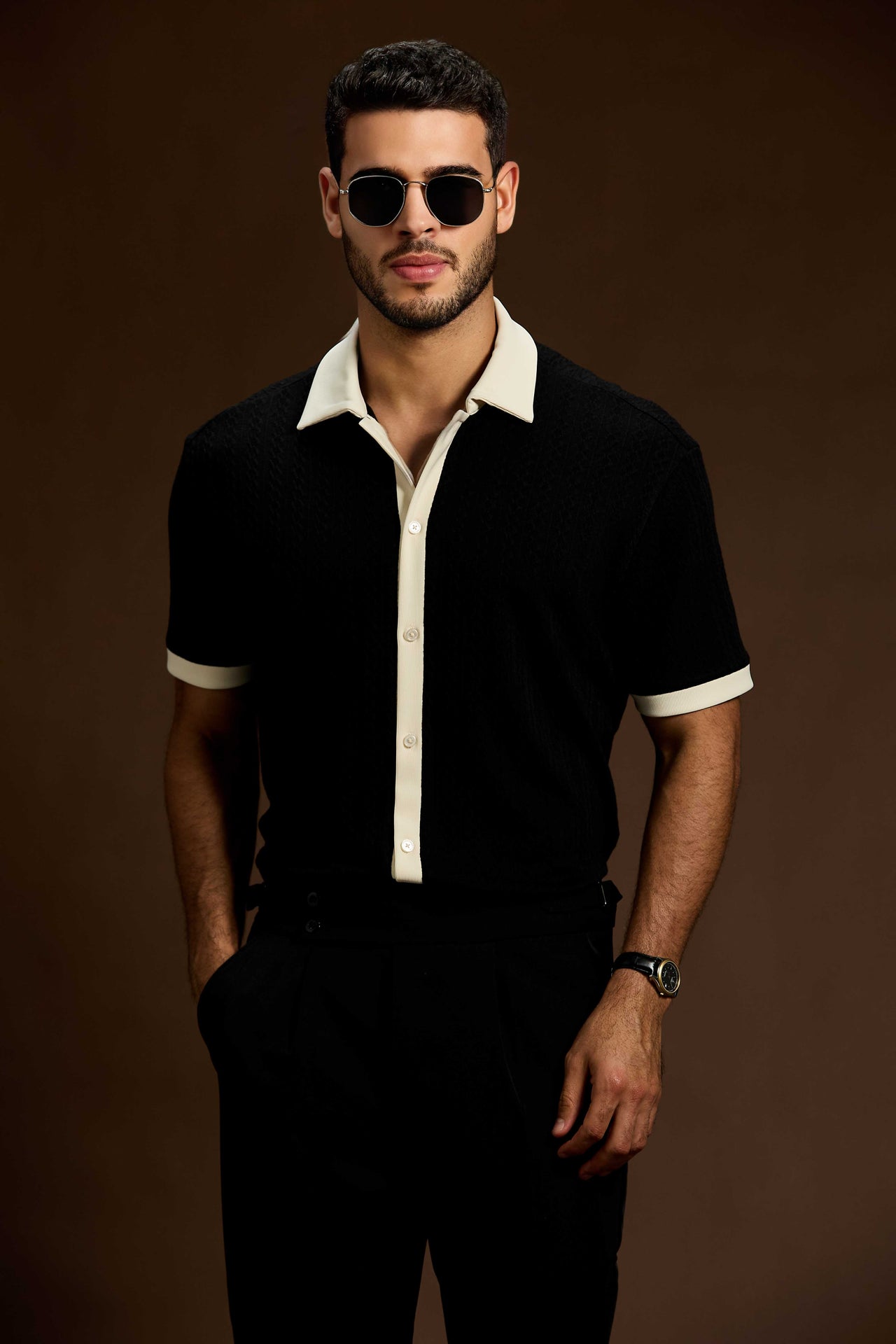 Lunaris Contrast Knit Polo is designed to deliver a refined yet relaxed look with a modern edge. Crafted from a premium textured knit, this polo features a subtle micro-pattern that adds depth and character to the fabric while keeping it breathable and soft against the skin. The contrast collar and clean button placket create a sharp focal point, elevating the classic polo silhouette into a more sophisticated statement piece. With its tailored fit and neatly finished short sleeves, this style offers a flattering shape and all-day comfort, making it ideal for both smart-casual occasions and elevated everyday wear.