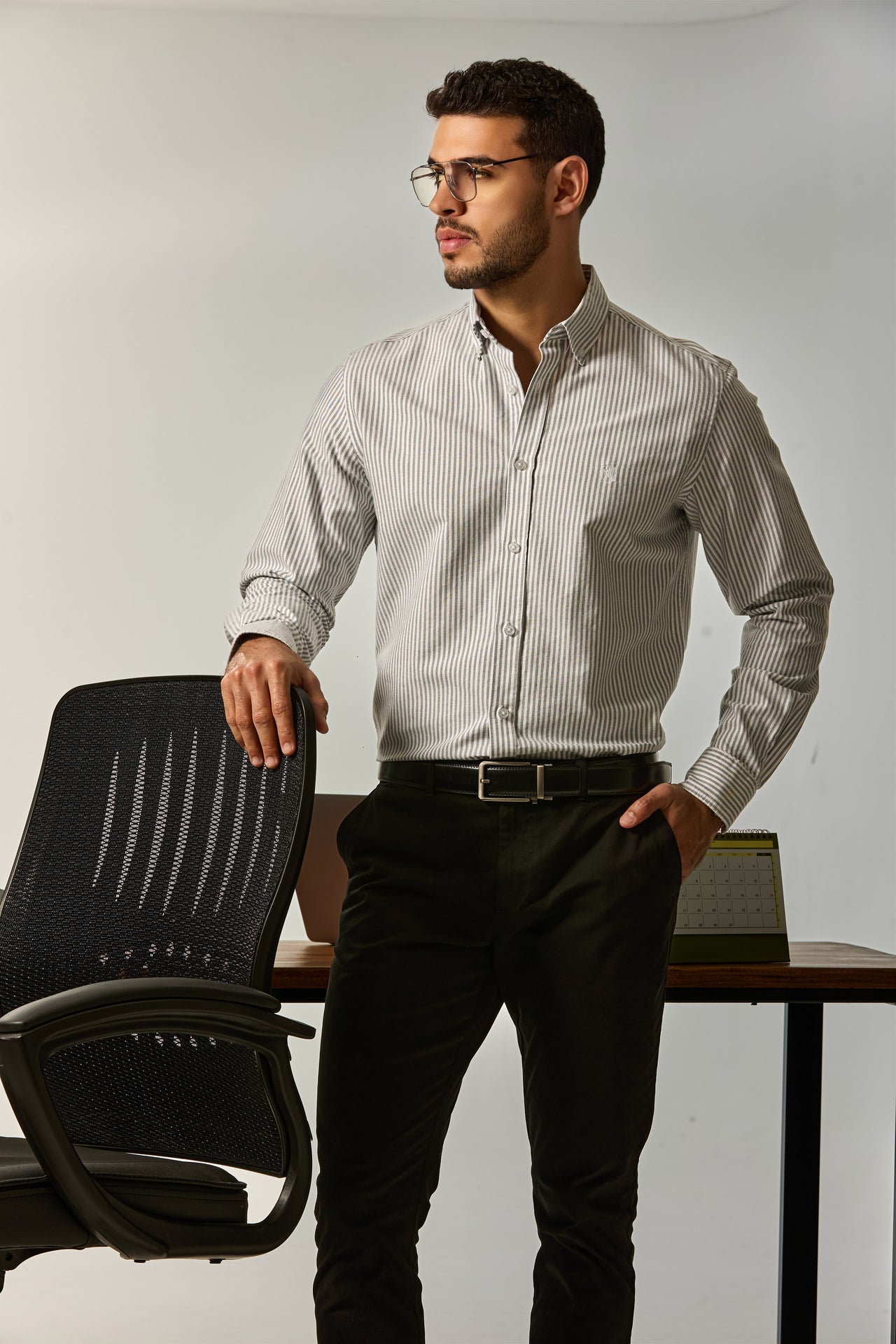 This long-sleeve shirt blends timeless tailoring with modern comfort. Crafted from a smooth woven fabric, it features a refined vertical stripe texture that adds depth and elongates the silhouette. The material feels soft against the skin while maintaining a crisp structure, making it ideal for both everyday wear and polished occasions.